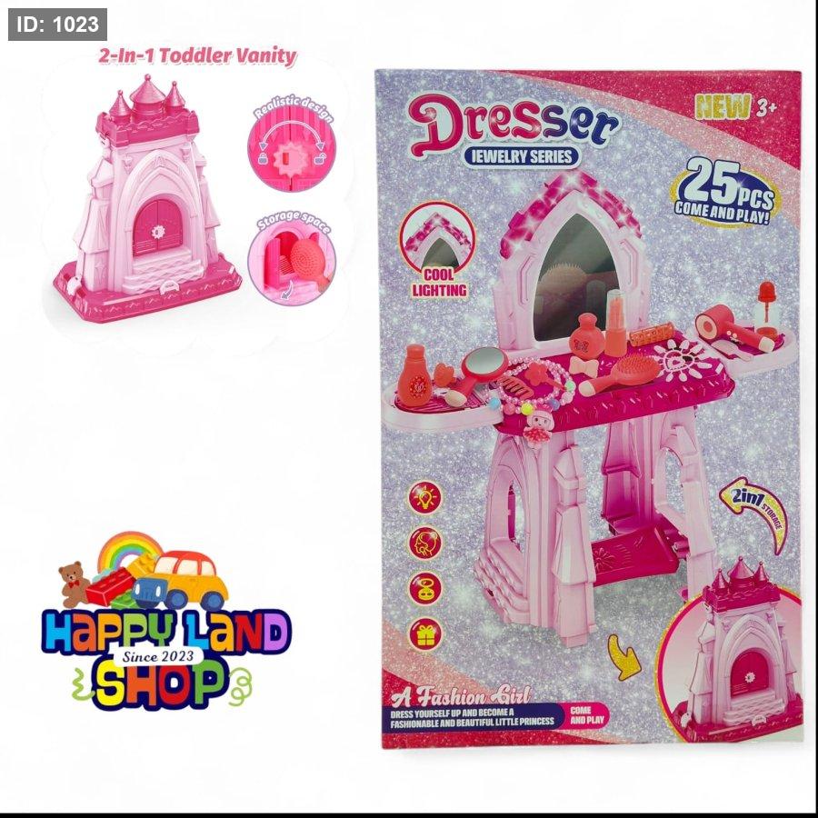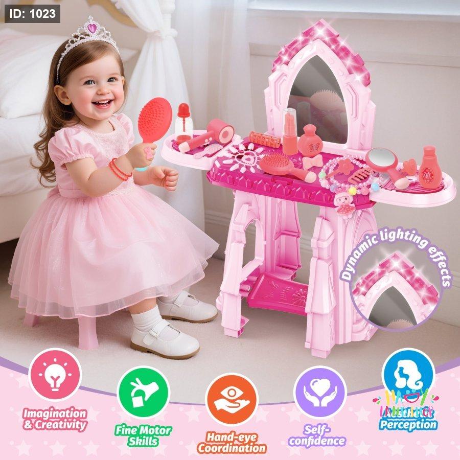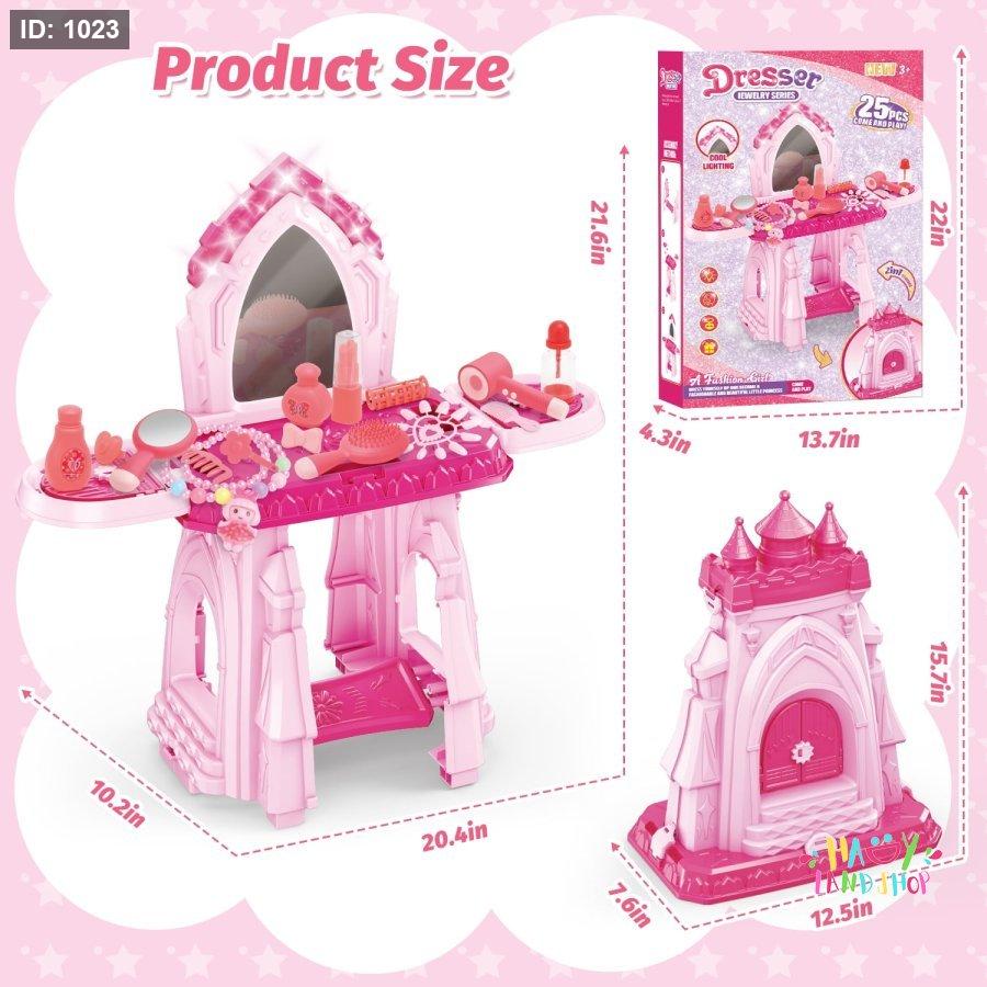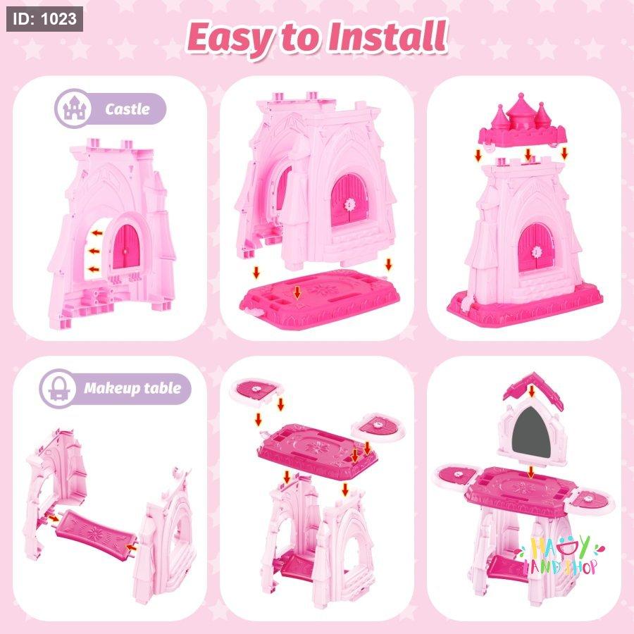 • تصميم قلعة أميرة مع مرآة وإكسسوارات تجميلية متنوعة