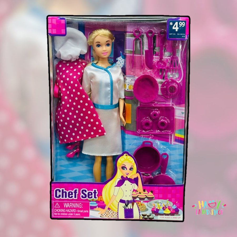 👩‍🍳 Chef Set – دمية الطاهية وأدوات المطبخ