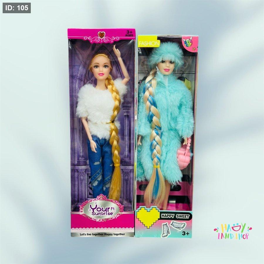 • شعر أشقر طويل مضفر وحذاء كعب وردي أنيق