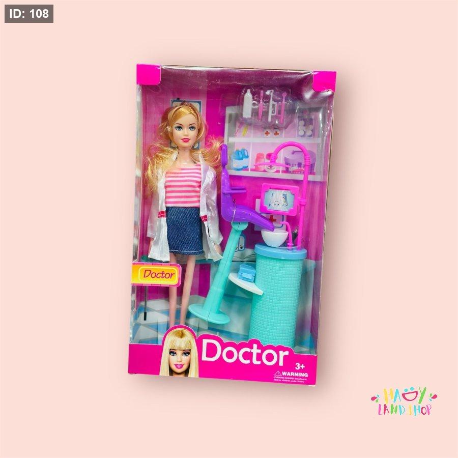 مجموعة لعب تعليمية تمثل شخصية طبيبة أنيقة، مصممة لتشجيع الأطفال على استكشاف عالم الطب والرعاية الصحية بطريقة ممتعة وتفاعلية