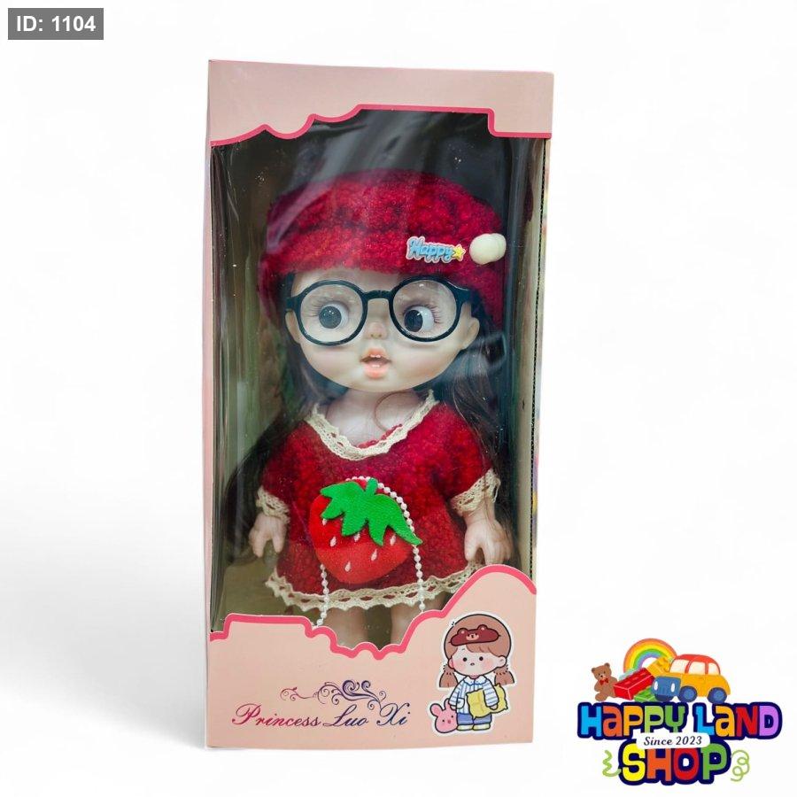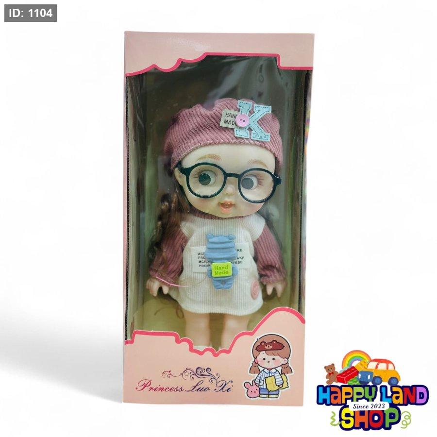 دمية أنيقة للأطفال تتميز بعيون كبيرة ونظارات مستديرة،