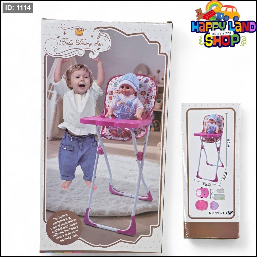 كرسي طعام تفاعلي للدمى مصمم للأطفال من عمر 3 سنوات فما فوق، يمنحهم تجربة لعب ممتعة تحاكي العناية بالطفل في أجواء واقعية.