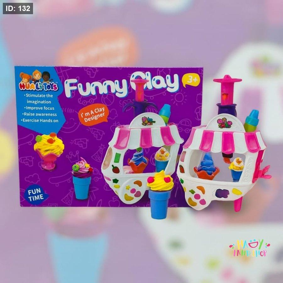 مجموعة تشكيل ممتعة للأطفال داخل صندوق أنيق، مستوحاة من عالم الحلويات، تتيح لهم تصميم آيس كريم، كعك، ومجموعة من الأطعمة اللطيفة باستخدام عجينة اللعب الملونة.