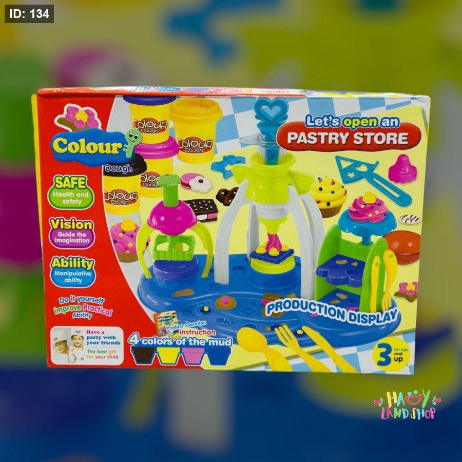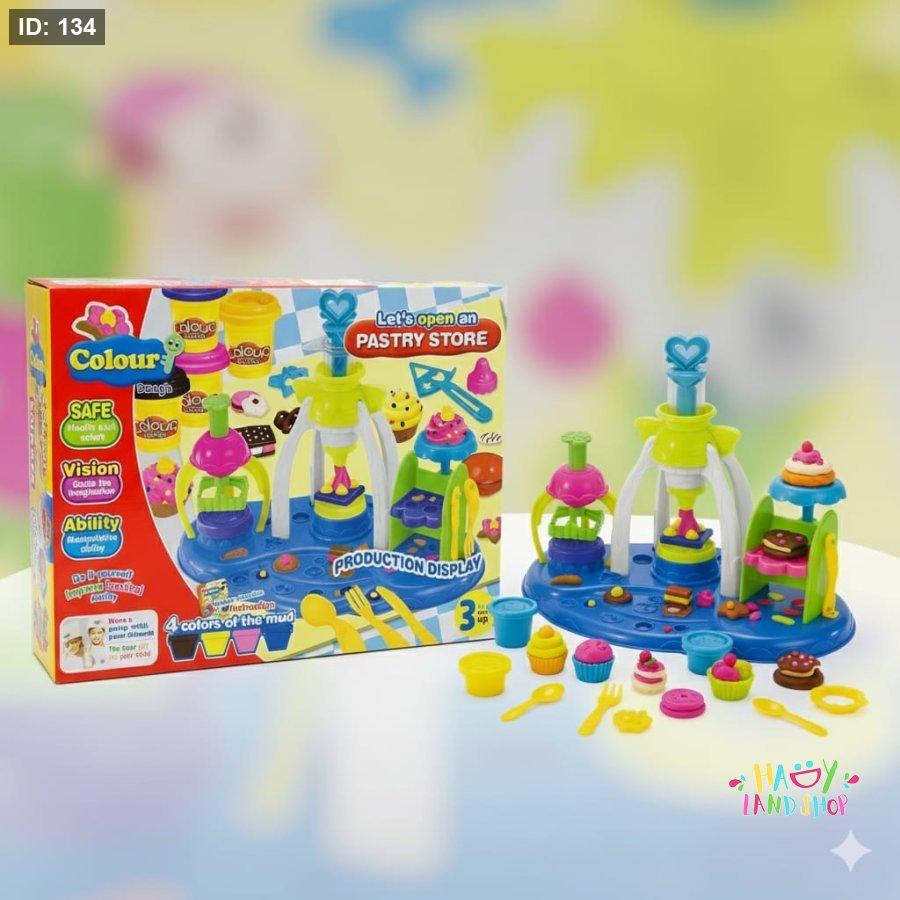 مجموعة تشكيل ممتعة داخل صندوق ملون، تتيح للأطفال تصميم مخبوزات ومعجنات باستخدام عجينة اللعب، في تجربة مليئة بالخيال والتفاعل.