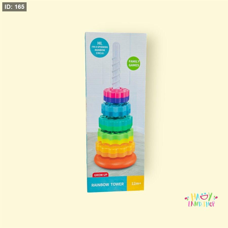 الوصف: لعبة تعليمية مكوّنة من حلقات ملونة قابلة للتكديس على قاعدة لولبية، مصممة لتطوير المهارات الحركية والإدراك البصري لدى الأطفال
