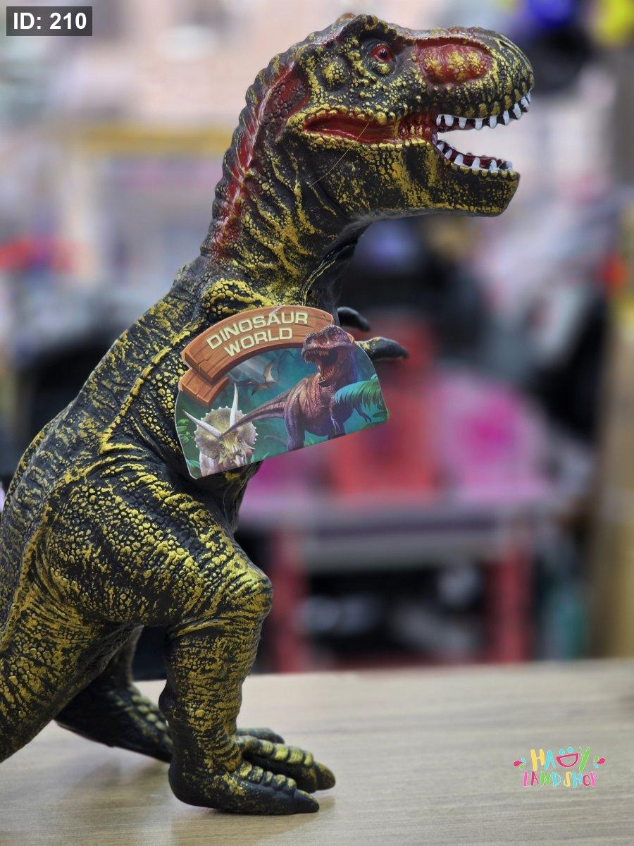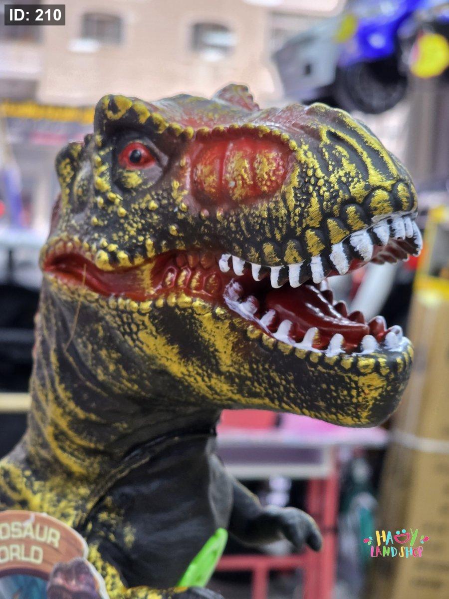 ✅️ شكل ديناصور ضخم (T-Rex) بتفاصيل دقيقة وألوان جذابة تجمع بين الأخضر الداكن والأصفر الفاتح