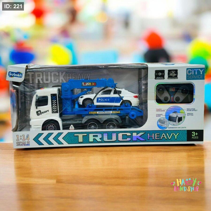 استعد للانطلاق في مهام الإنقاذ مع شاحنة "CITY SERVICE" من Suban! تصميم واقعي بمقياس 1:14 يجمع بين شاحنة تحميل ثقيلة وسيارة شرطة بيضاء، مع مؤثرات صوتية وضوئية تضيف لمسة من الإثارة والتفاعل.