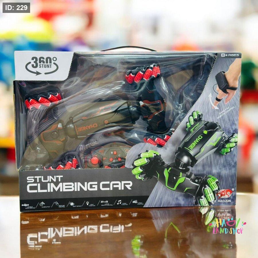 استعد لتجربة قيادة خارقة مع سيارة Stunt Climbing Car من Haojun! تصميم مستقبلي بلون أخضر جذاب، مزوّد بعجلات ضخمة للطرق الوعرة، وتحكم مبتكر عبر جهاز يُرتدى على اليد لتنفيذ حركات مذهلة بزاوية 360°!