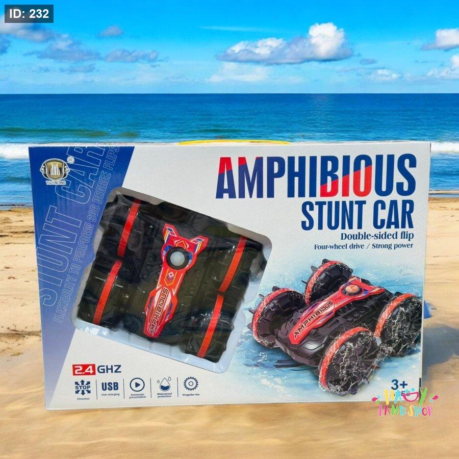 استعد لتجربة قيادة لا مثيل لها مع سيارة Amphibious Stunt Car! تصميم قوي بلون أحمر مع عجلات ضخمة، تعمل على اليابسة والماء، وتنفذ حركات مذهلة بفضل ميزة الانقلاب المزدوج والدفع الرباعي.