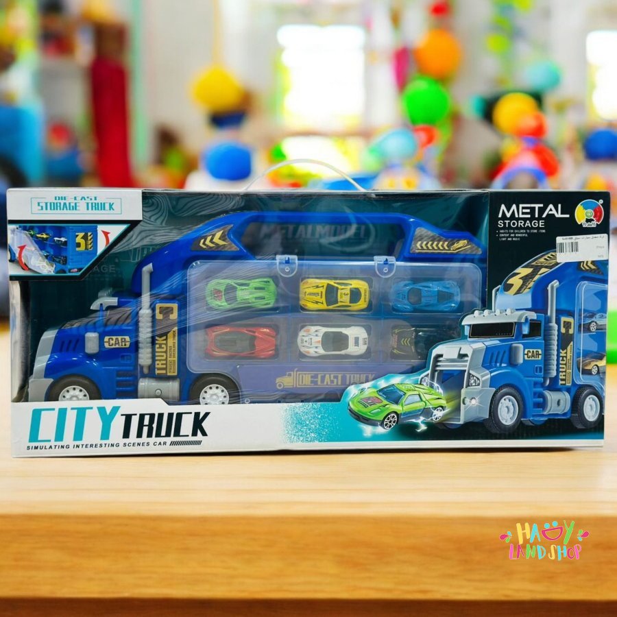 شاحنة تخزين معدنية مع 6 سيارات صغيرة