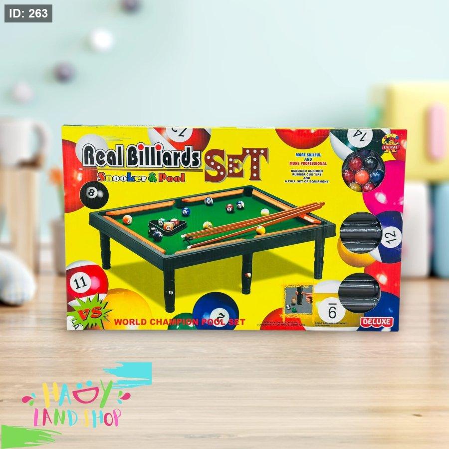 استعد لمنافسة مليئة بالإثارة مع طقم "Real Billiards Snooker & Pool SET" المصمم خصيصًا للأطفال! يحتوي الطقم على طاولة خضراء صغيرة بستة جيوب، مثلث ترتيب، ومجموعة كاملة من الكرات المرقّمة، مما يمنح طفلك تجربة لعب واقعية بحجم مناسب.