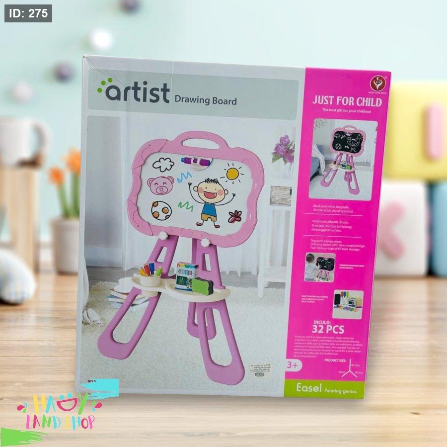 أطلق العنان لموهبة طفلك الفنية مع لوحة الرسم "artist Drawing Board" المصممة خصيصًا للأطفال من عمر 3 سنوات فما فوق. تحتوي المجموعة على 32 قطعة تشمل أدوات رسم متنوعة، وتتميز بلوحة مزدوجة بسطح أبيض يمكن الكتابة والرسم عليه، مع قاعدة متينة مزودة بمساحات تخزين لأدوات الرسم.