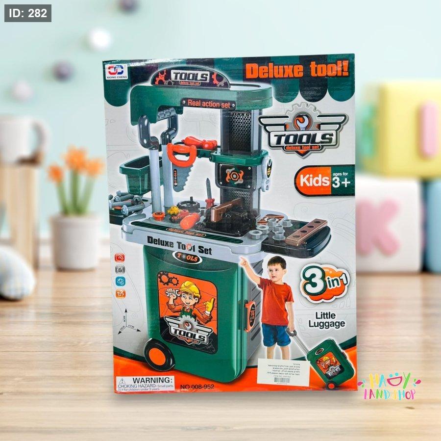• طقم أدوات: يحتوي على مفكات، مطرقة، مفتاح ربط، وغيرها من الأدوات الآمنة للأطفال
