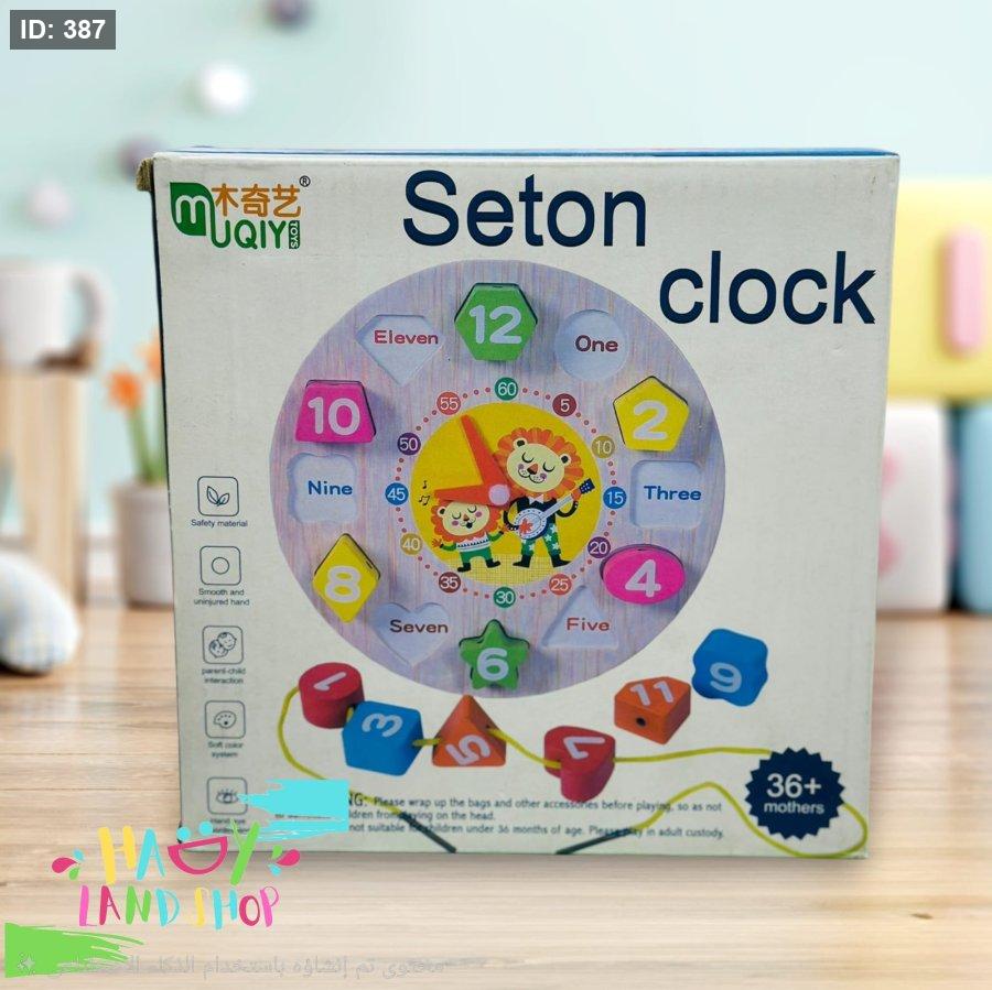 "Seton Clock" من Muqiy هي لعبة تعليمية مثالية للأطفال من عمر 3 سنوات فما فوق، تساعدهم على التعرف على الأرقام، الأشكال، وأسماء الساعات باللغة الإنجليزية.