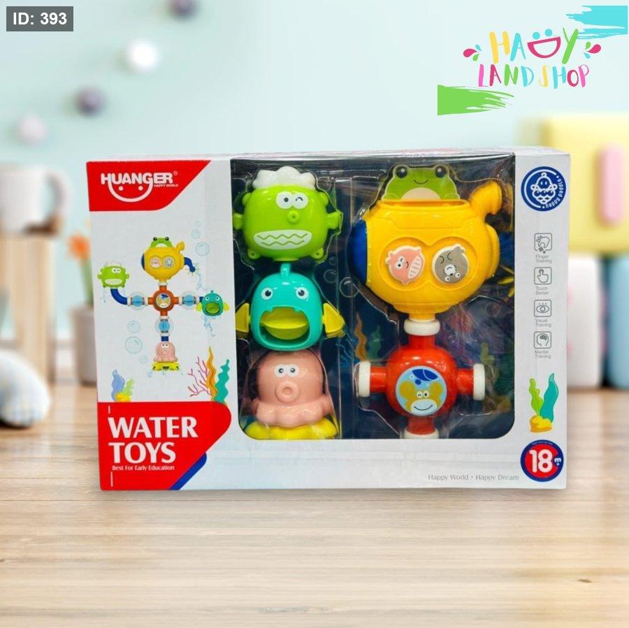 * **متعة لا تتوقف:** تتكون المجموعة من جزأين رئيسيين؛ **نافورة مائية** على شكل غواصة لطيفة مع ضفدع، و**برج مائي** مكون من شخصيات بحرية مرحة. ببساطة، املأ الغواصة بالماء وشاهدها تتدفق عبر البرج، محركةً أجزاءه ومُصدرةً تأثيراً يشبه الشلال!