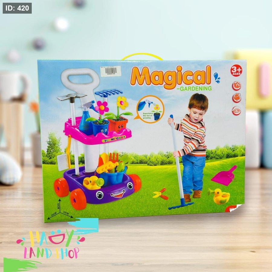 ألوان زاهية، وجه مبتسم على العربة، وأدوات بحجم مناسب لأيدي الأطفال الصغيرة.