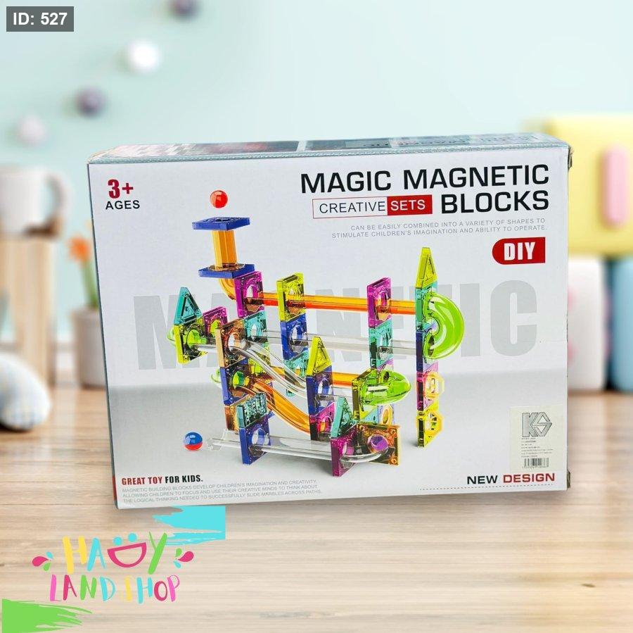 هي لعبة بناء تعليمية وإبداعية (DIY) مصممة للأطفال من عمر 3 سنوات فما فوق. تركز اللعبة على بناء مسارات متقاطعة ومعقدة للكرات (Marble Run) باستخدام قطع مغناطيسية متنوعة، مما يجعلها لعبة ممتازة لتطوير المهارات الهندسية والمنطقية.