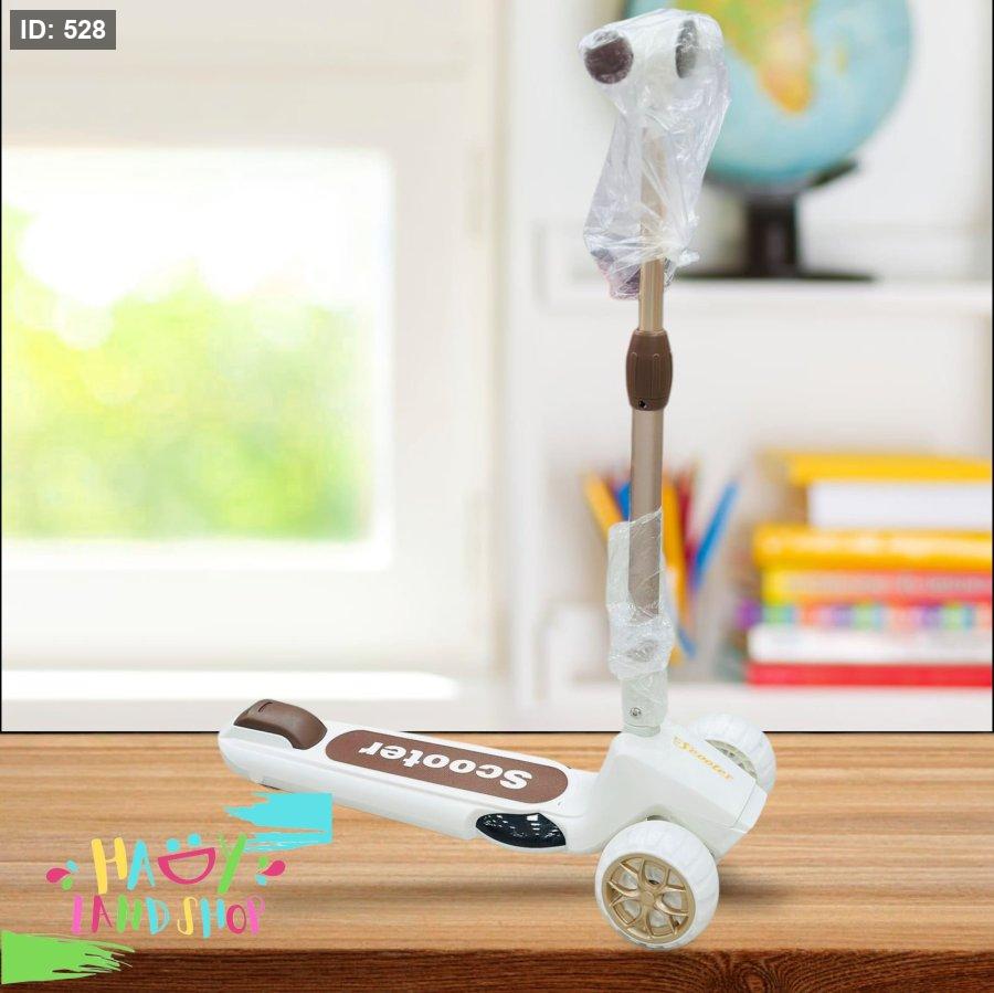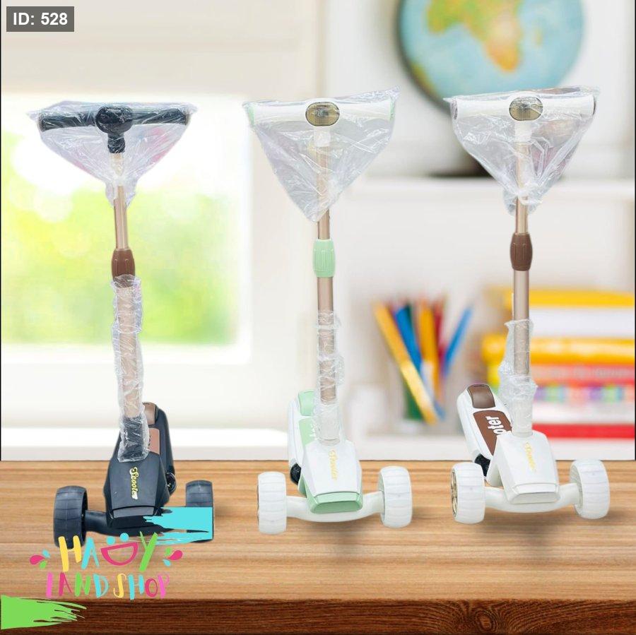 * **ثلاث عجلات:** يحتوي كل سكوتر على عجلتين أماميتين وعجلة خلفية ، وهو تصميم يوفر ثباتًا وتوازنًا ممتازًا للأطفال المبتدئين.