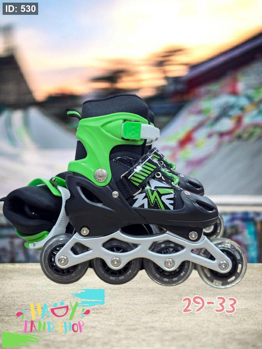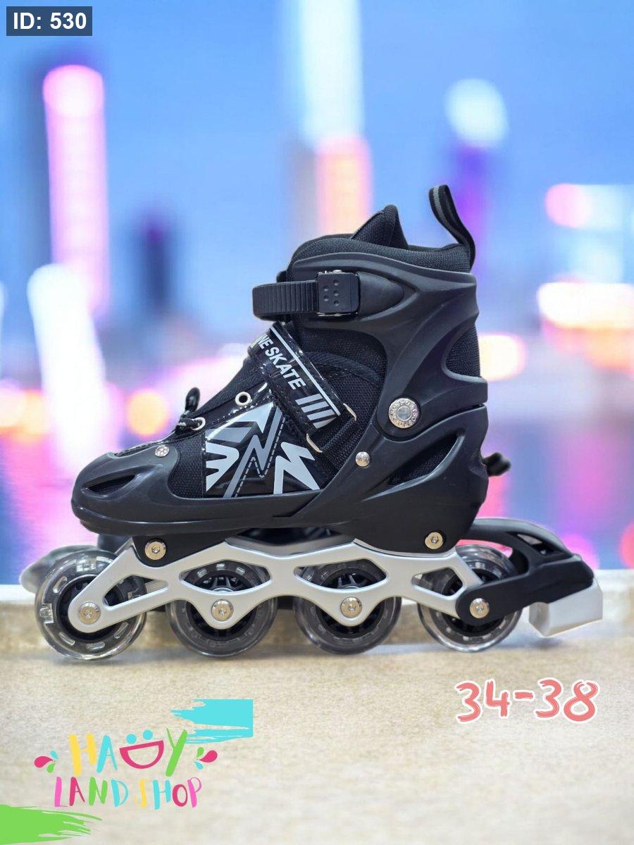 هو حذاء تزلج بعجلات متوازية (Inline)، مصمم بشكل رياضي وجذاب. الحذاء مخصص للأطفال أو المبتدئين، ويتميز بقدرته على التكيف مع نمو القدم.