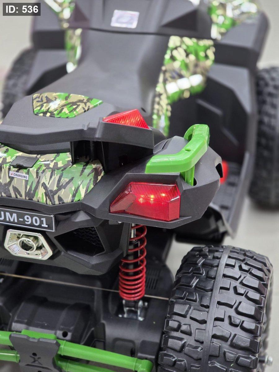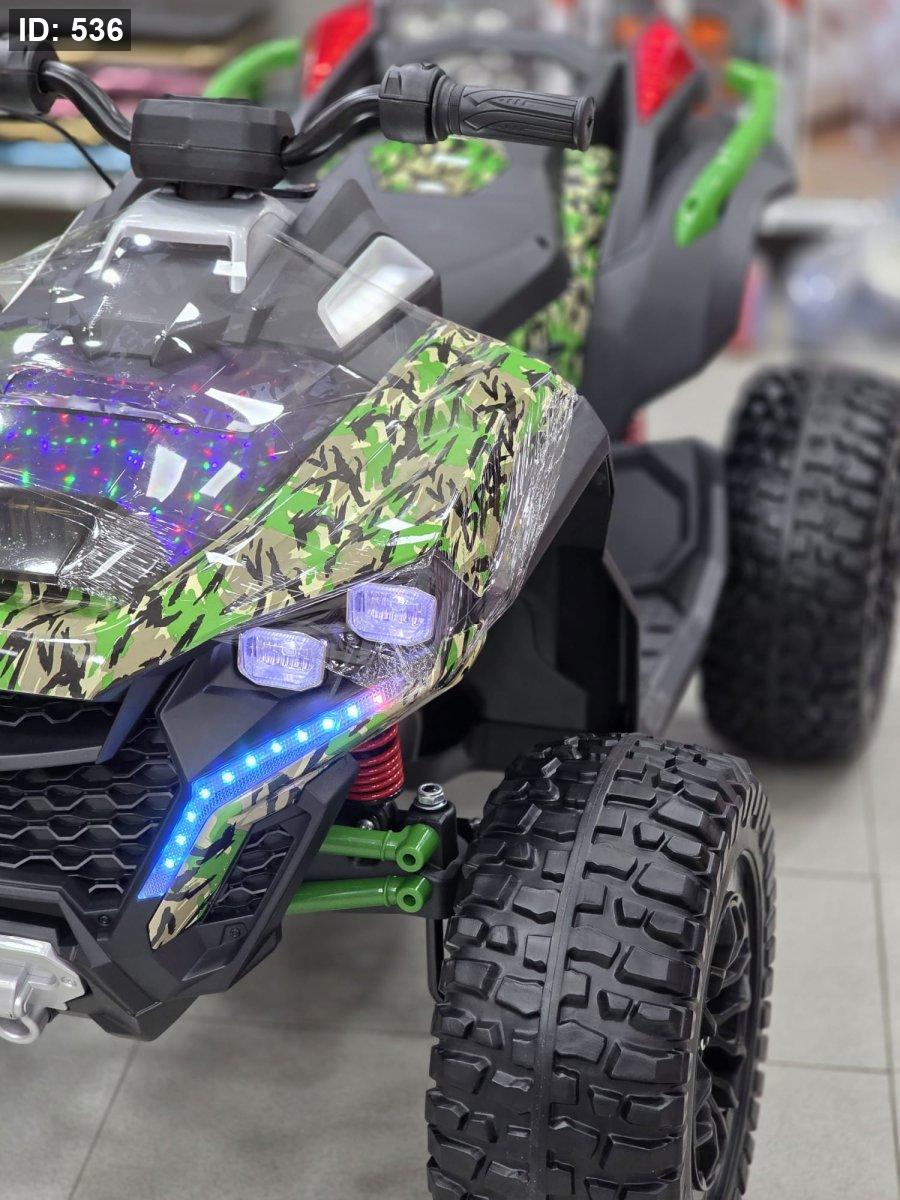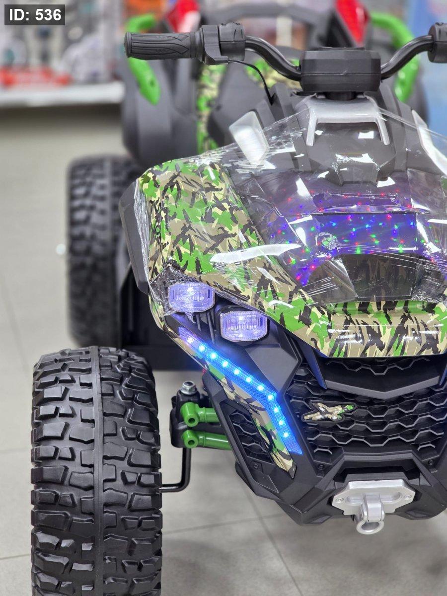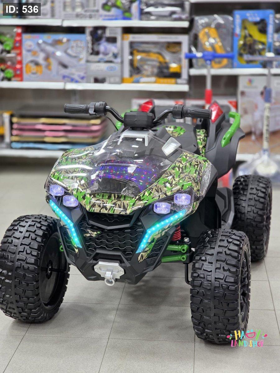 هي دراجة نارية رباعية (ATV) كهربائية مصممة للأطفال، تتميز بتصميم قوي وجذاب وميزات ضوئية لافتة.