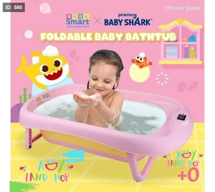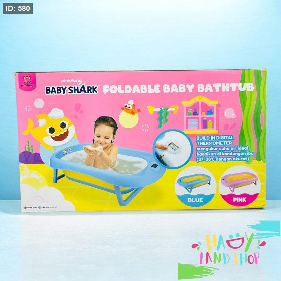 🦈 حوض استحمام للأطفال من Baby Shark – قابل للطي مع مقياس حرارة رقمي!