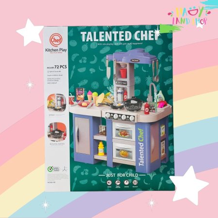 📦 المحتوى: مطبخ متكامل + أدوات طهي + طعام بلاستيكي