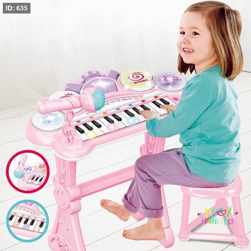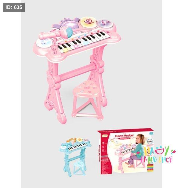• أورغ إلكتروني وردي-بنفسجي: مزود بأزرار متعددة لإصدار أصوات آلات موسيقية متنوعة.
