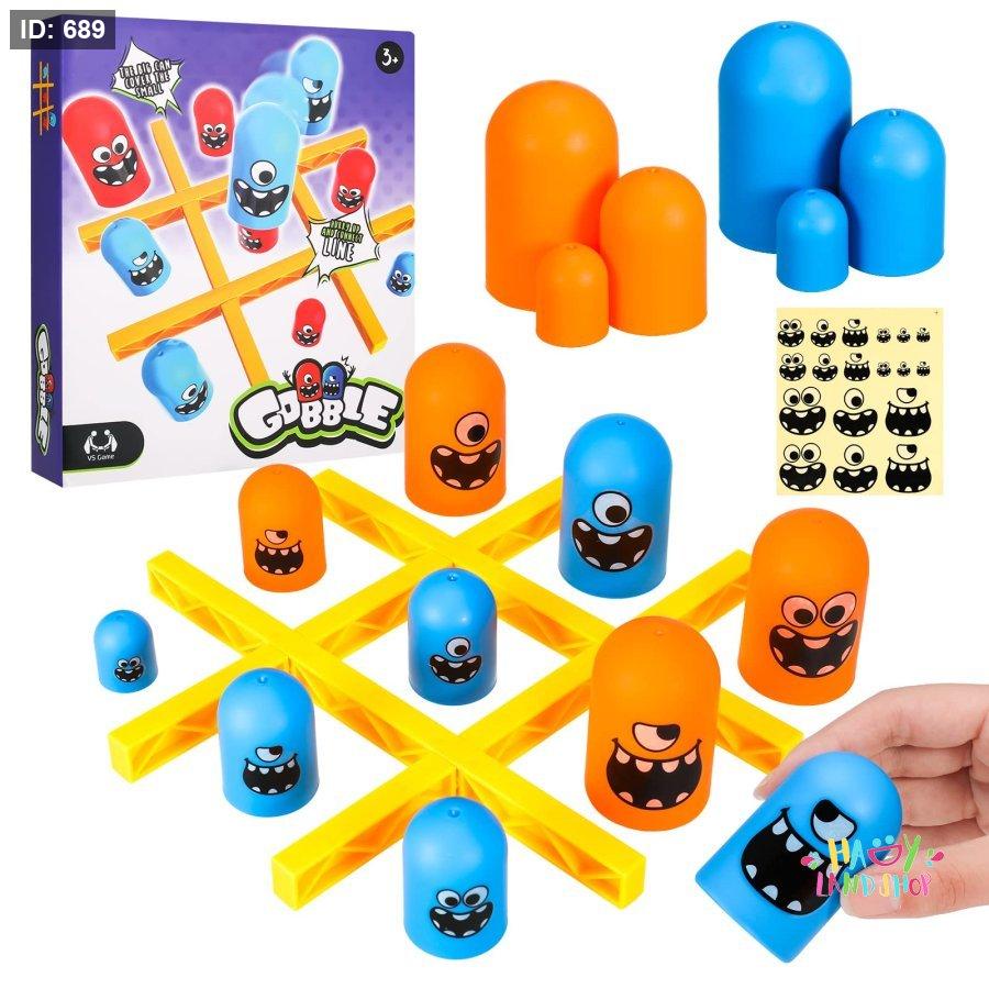 الوصف: أضف لمسة من المرح والذكاء إلى وقت اللعب مع لعبة "Gobble" اللوحية! تعتمد على فكرة لعبة "تيك-تاك-تو" الكلاسيكية ولكن مع لمسة استراتيجية جديدة، حيث يمكن للقطع الكبيرة أن "تأكل" أو تغطي القطع الصغيرة، مما يضيف تحديًا وتفكيرًا أعمق للأطفال.