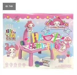 طاولة الرسم الإسقاطية للأطفال – تصميم وردي جذاب مع شخصية كرتونية لطيفة ترتدي تاجًا وتملك أذنين طويلتين، تضيف لمسة من المرح والتشويق.