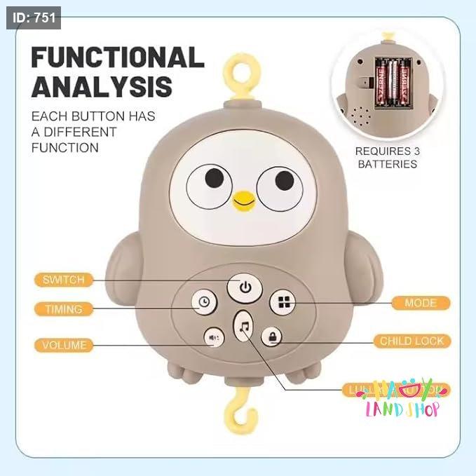 تتميز بصندوق موسيقي على شكل بومة لطيفة، مزود بأزرار تحكم ومرفق بجهاز تحكم عن بُعد لسهولة التشغيل.