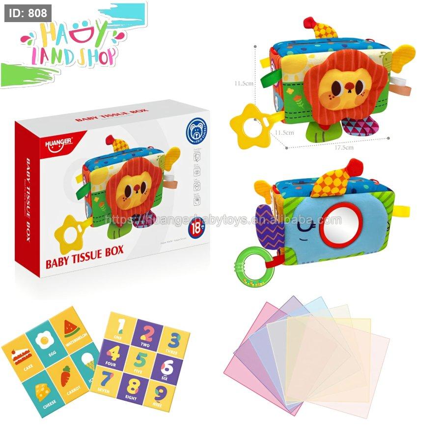 صندوق المناديل التعليمي من HUANGER هو لعبة مبتكرة للأطفال من عمر 18 شهرًا فما فوق، مصمم لتحفيز الحواس وتنمية المهارات الحركية الدقيقة.