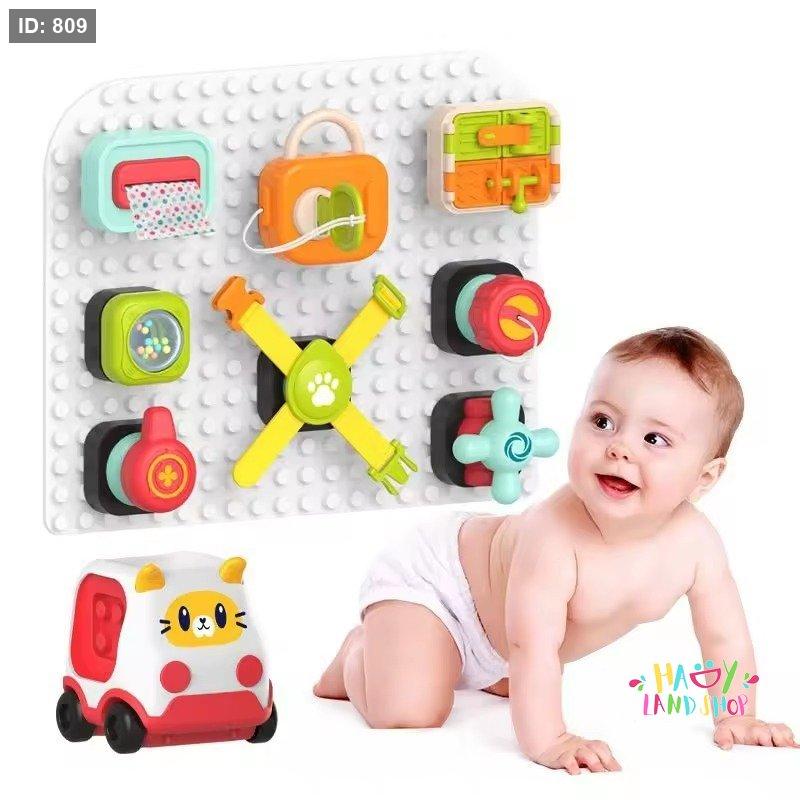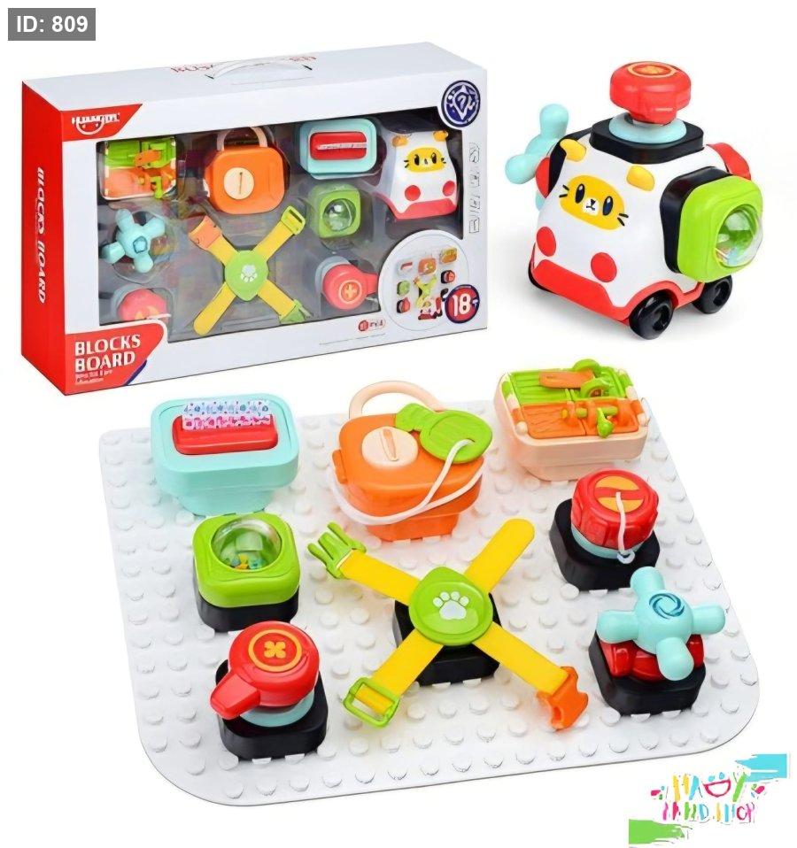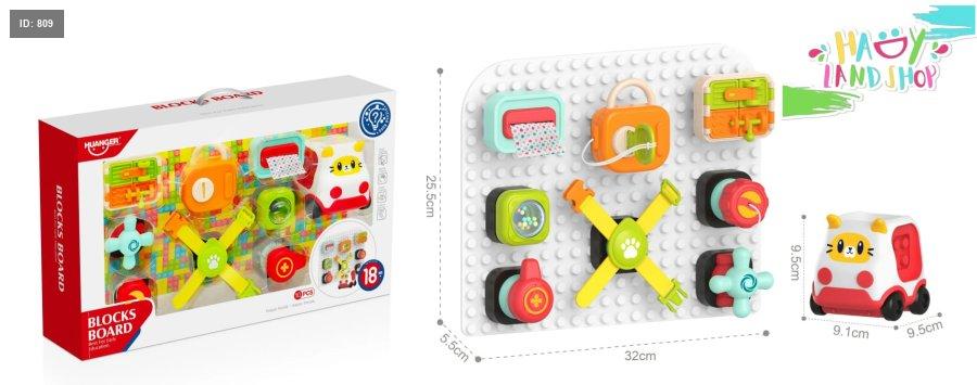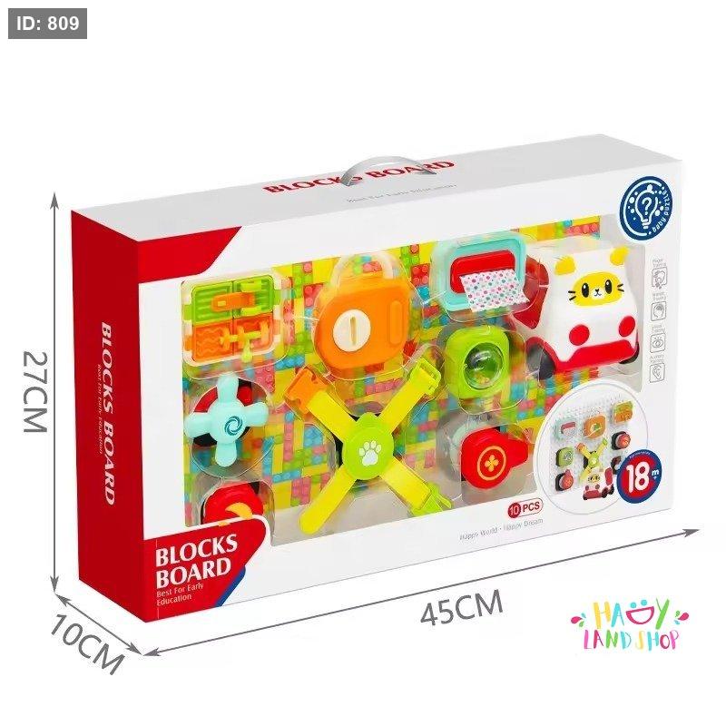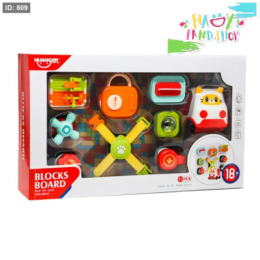 لوحة المكعبات BLOCKS BOARD هي لعبة تعليمية مثالية للأطفال من عمر 18 شهرًا فما فوق، مصممة لتطوير المهارات الحركية الدقيقة والتفكير الإبداعي.
