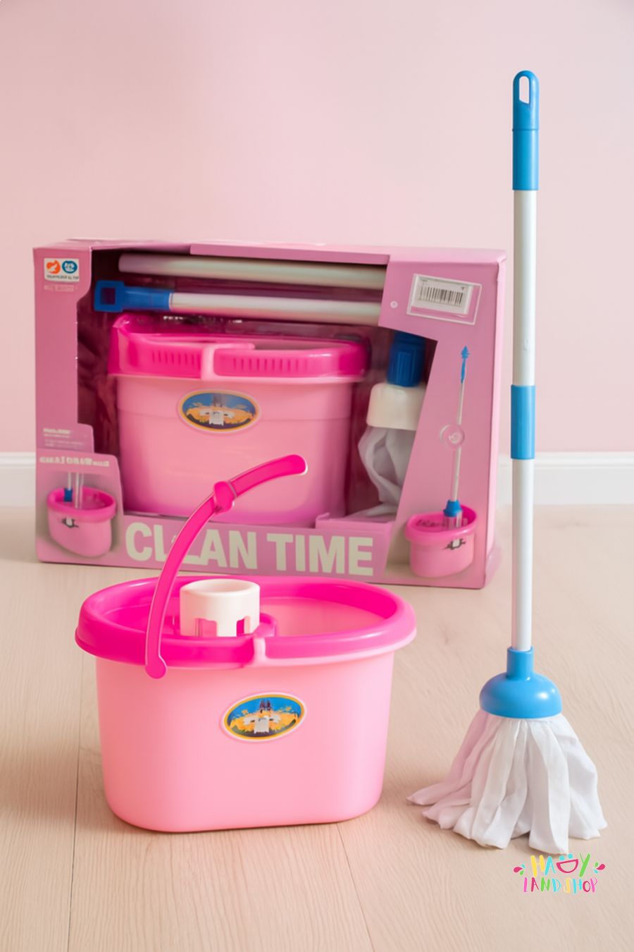 • تصميم يحاكي أدوات التنظيف الحقيقية بطريقة آمنة ومناسبة للأطفال
