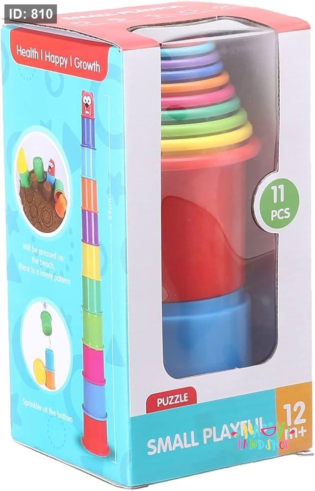 مجموعة أكواب التكديس من PUZZLE مصممة خصيصًا للأطفال من عمر 12 شهرًا فما فوق، وتحتوي على 11 كوبًا ملونًا بألوان قوس قزح، يمكن تكديسها أو ترتيبها داخل بعضها البعض.