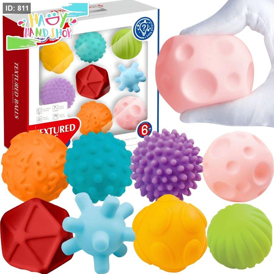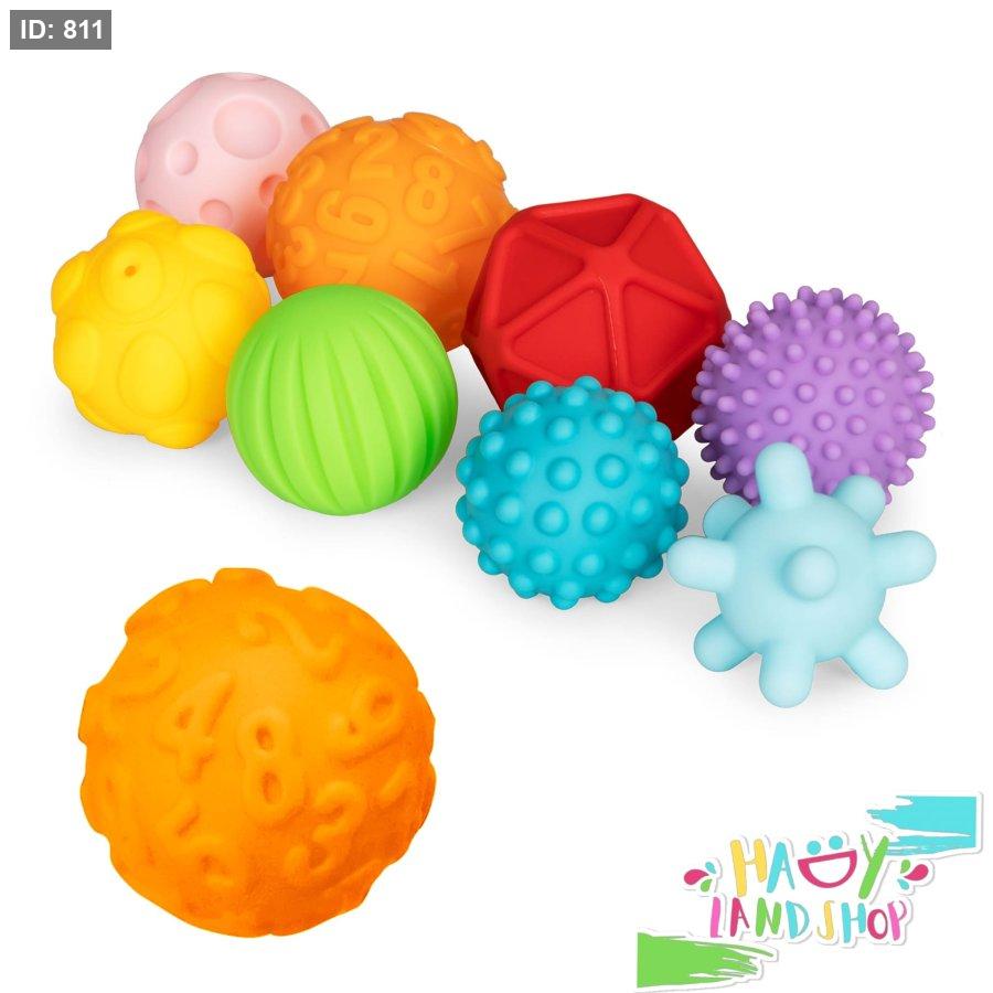 كل كرة تتميز بسطح مختلف: خطوط، نتوءات، أرقام، وأشكال هندسية، مما يساعد الطفل على استكشاف الملمس والتفاعل مع الألوان والأشكال بطريقة ممتعة وآمنة.
