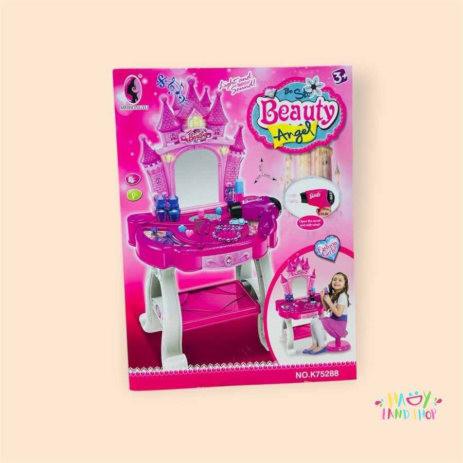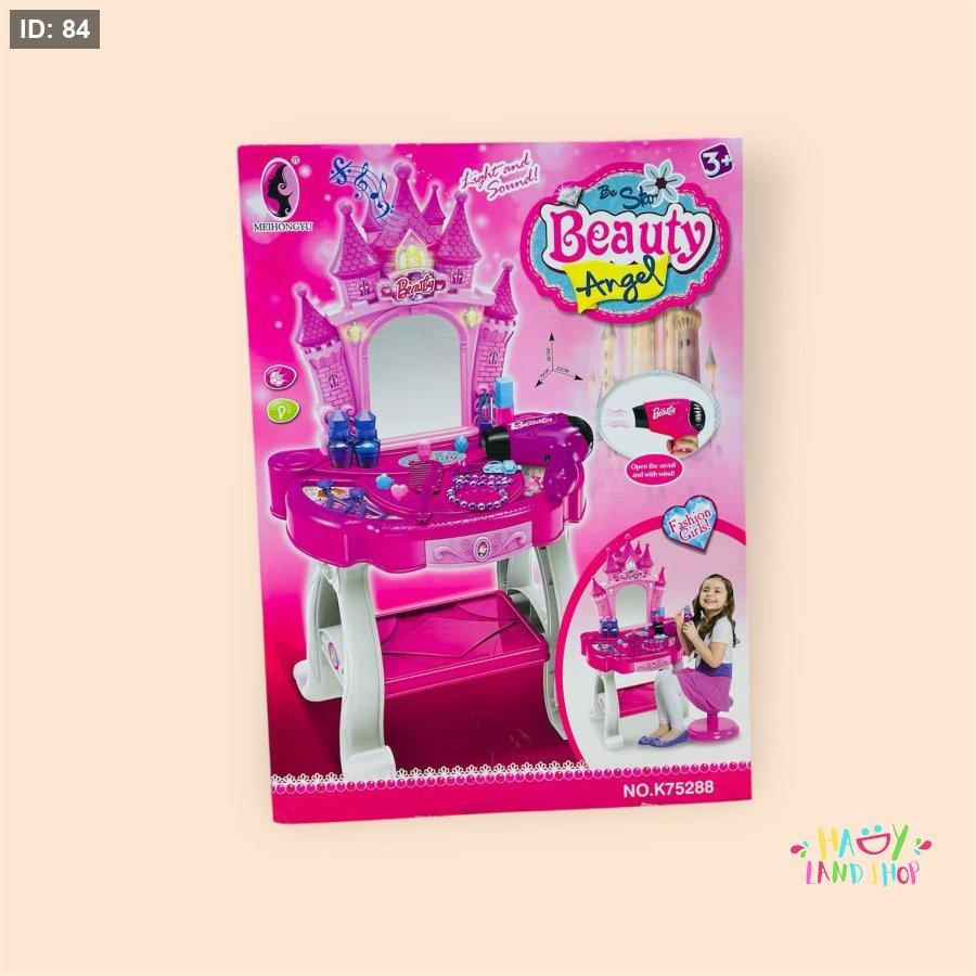 • طاولة تجميل وردية مزودة بمرآة كبيرة بتصميم التاج الملكي