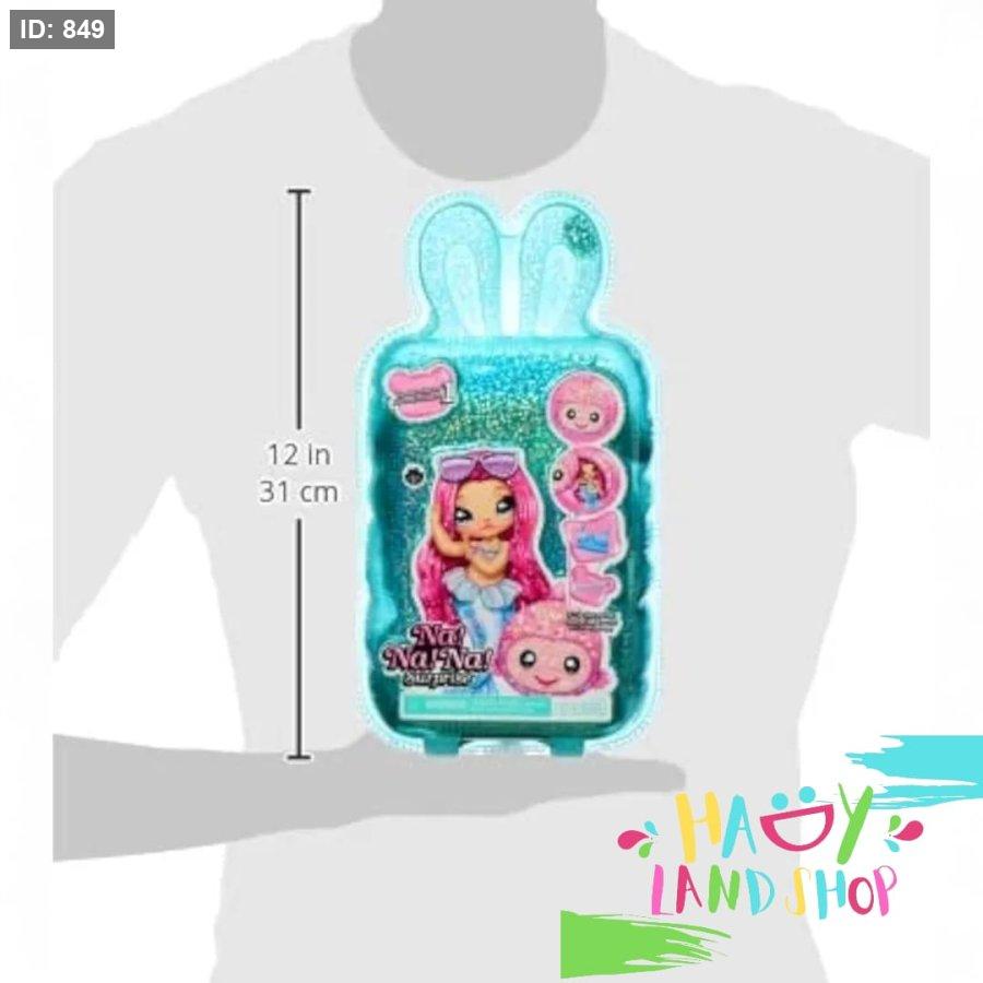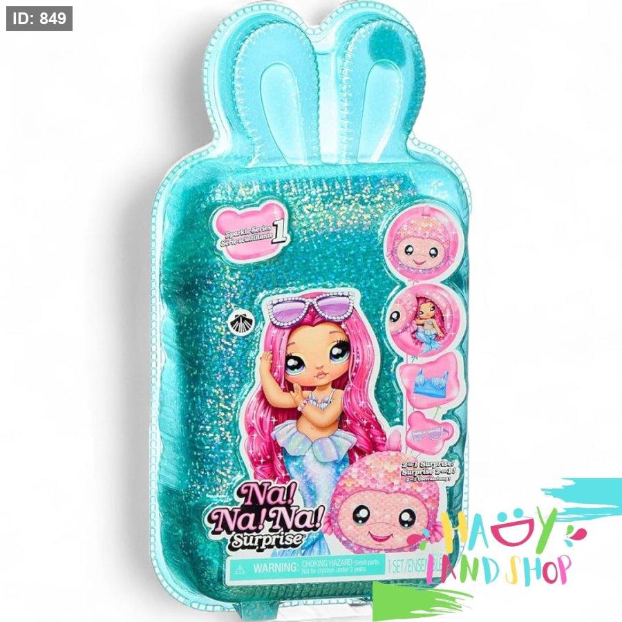 الوصف: اكتشف عالم المفاجآت والتألق مع سلسلة "Na! Na! Na! Surprise – Sparkle Series 1" من HAPPY LAND SHOP! تأتي العبوة بتصميم فريد على شكل أرنب لامع بلون تركوازي، وتحتوي على دمية أنيقة بشعر وردي طويل، ترتدي زيًا مستوحى من حورية البحر، بالإضافة إلى نظارات وإكسسوارات أنيقة.