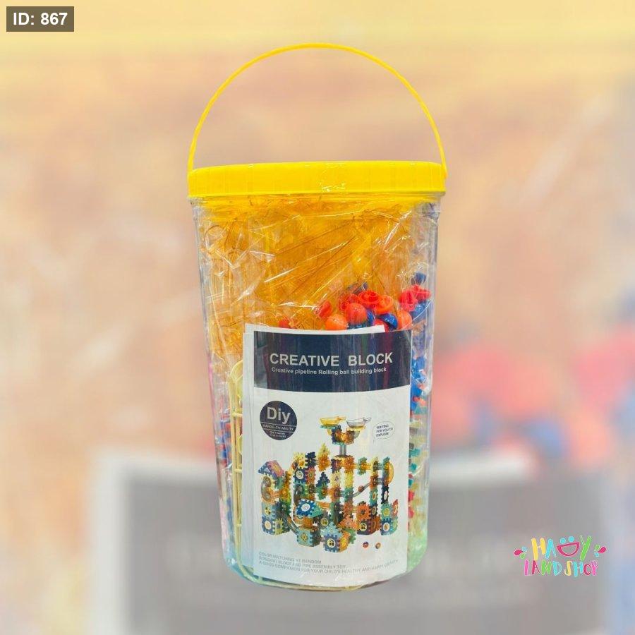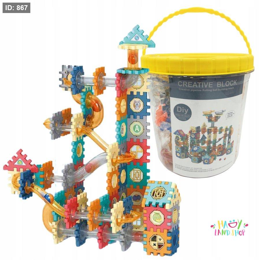 أطلق العنان لإبداع طفلك مع هذه المجموعة المذهلة من المكعبات الملونة! تتيح للأطفال تصميم مسارات متداخلة للكرات باستخدام أنابيب، تروس، منحدرات، وقطع تركيب متنوعة، مما يعزز مهاراتهم الهندسية والتخيلية.
