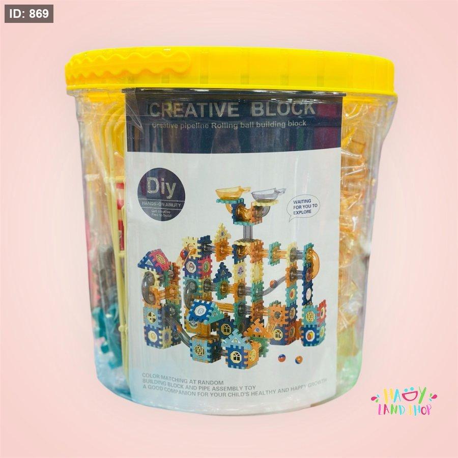 أطلق العنان لإبداع طفلك مع هذه المجموعة المذهلة من المكعبات الملونة! تتيح للأطفال تصميم مسارات متداخلة للكرات باستخدام أنابيب، تروس، منحدرات، وقطع تركيب متنوعة، مما يعزز مهاراتهم الهندسية والتخيلية.