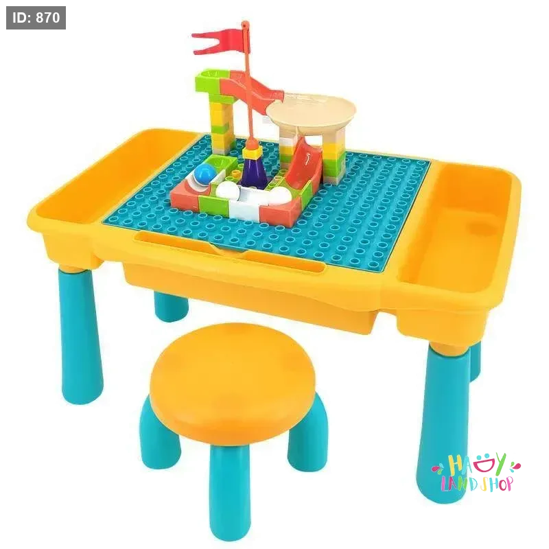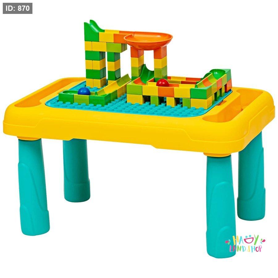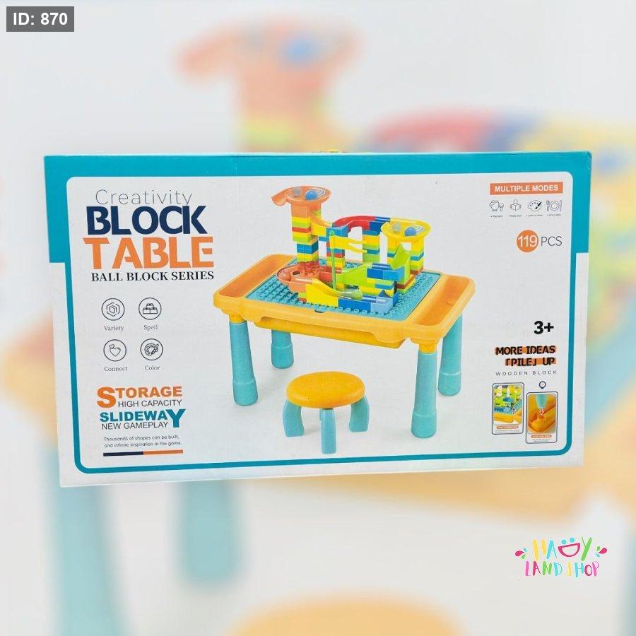 امنح طفلك تجربة لعب متكاملة تجمع بين المرح والتعلم! تحتوي المجموعة على طاولة تركيب ملونة بسطح مخصص للمكعبات، وكرسي صغير، وقطع متنوعة لبناء مسارات كرات متدحرجة، مما يعزز الإبداع والتفكير الهندسي لدى الأطفال.