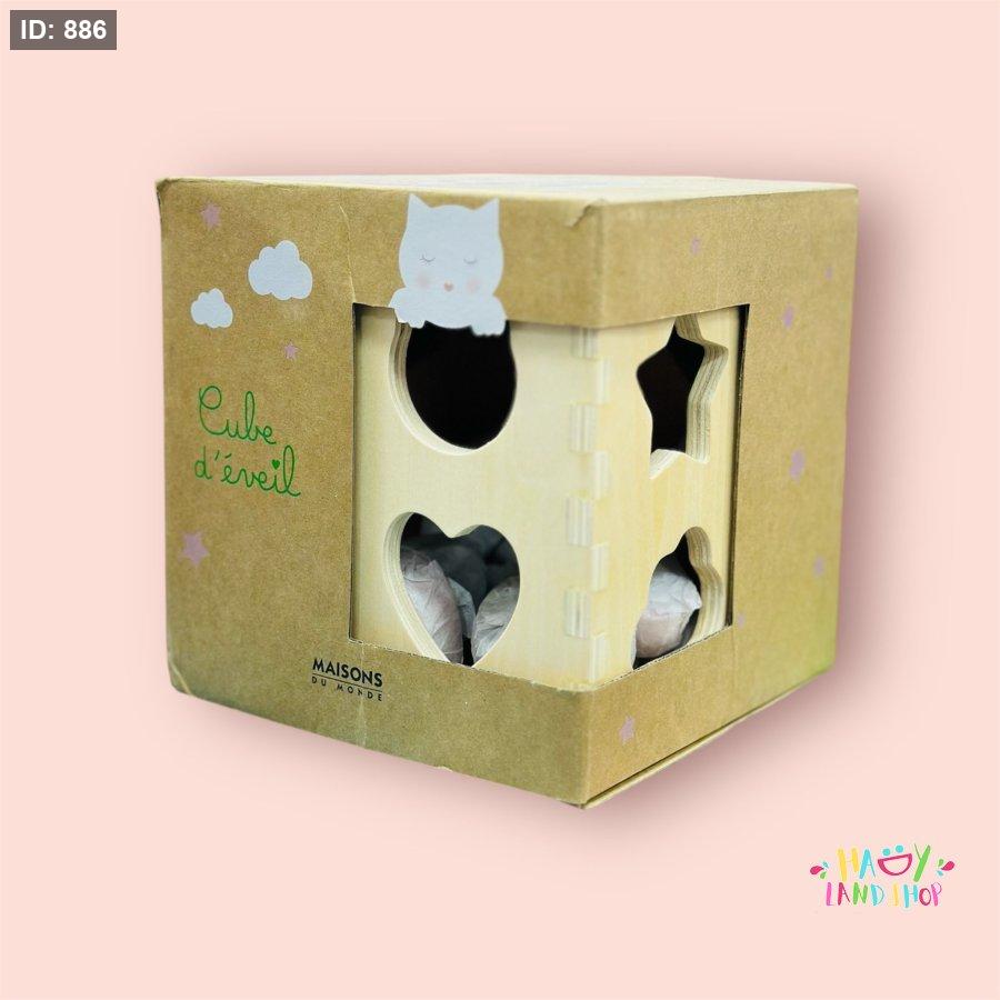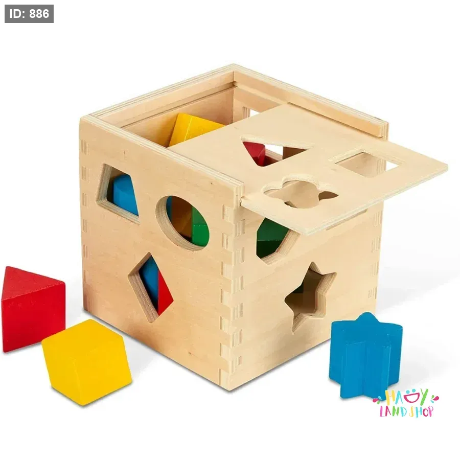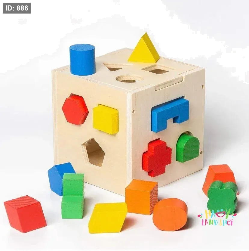 يحتوي المكعب على فتحات بأشكال هندسية متنوعة (دائرة، قلب، نجمة...) تساعد الطفل على التعرف على الأشكال وتطوير التنسيق بين اليد والعين من خلال مطابقة القطع الخشبية المناسبة.