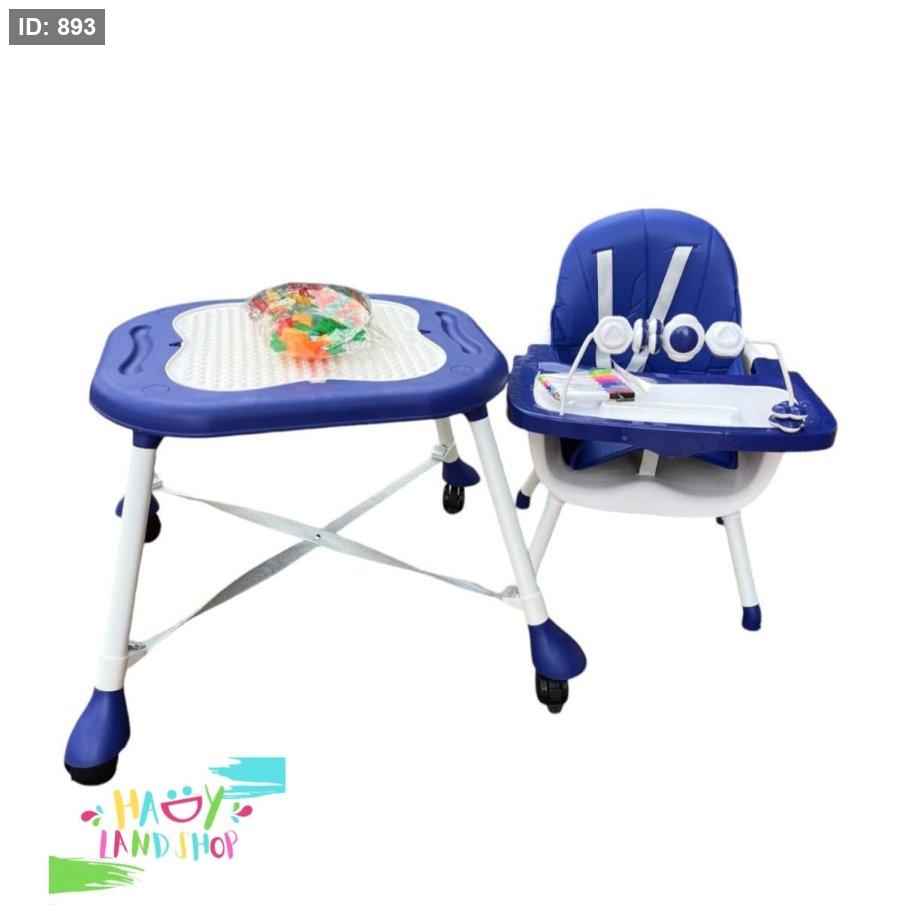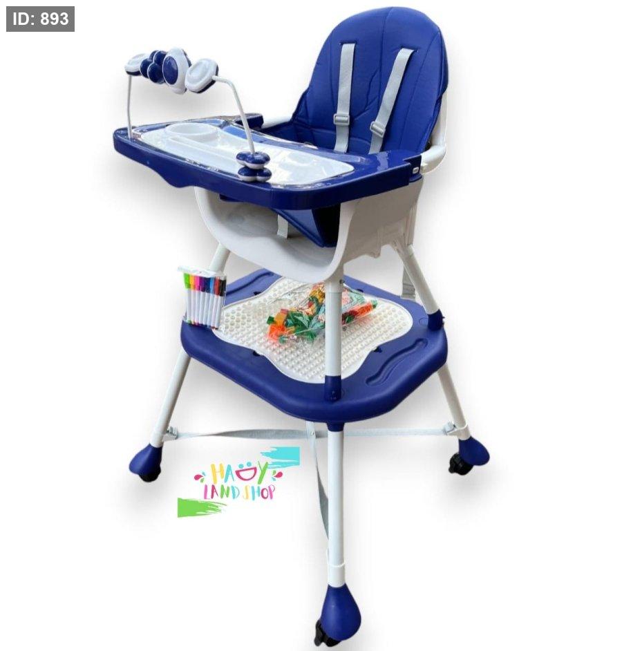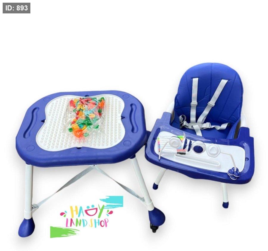 كرسي طعام 2 في 1 للأطفال متعدد الوظائف بلون أزرق وأبيض، يجمع بين الراحة، الأمان، والتنوع في الاستخدام.