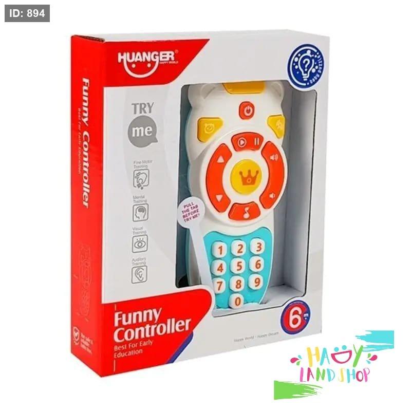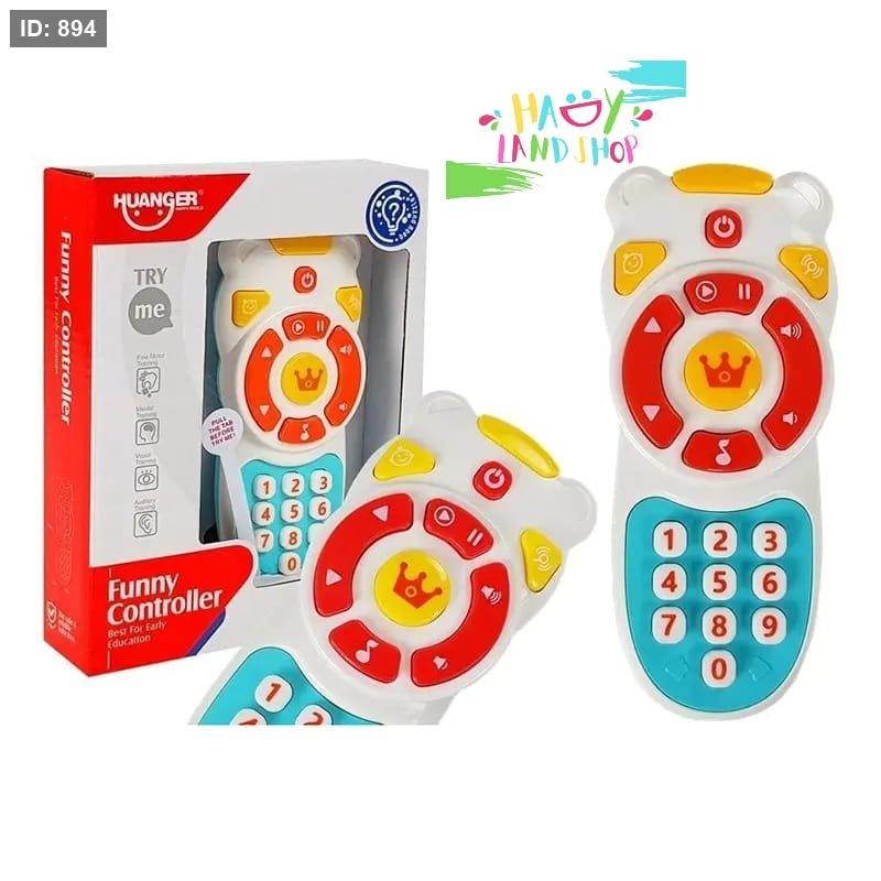 ريموت تعليمي للأطفال "Funny Controller" من HUANGER بتصميم دب لطيف وأزرار ملونة (أحمر، أصفر، أزرق)، يساعد الأطفال على تطوير المهارات الحركية الدقيقة، الإدراك السمعي، والخيال من خلال اللعب التفاعلي.