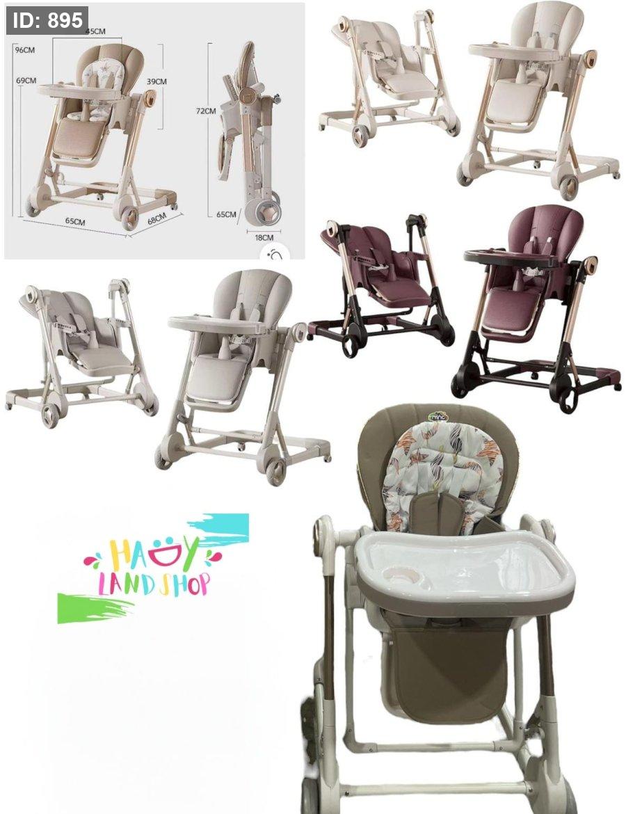 يمكن تعديله إلى أوضاع متعددة: وضعية جلوس مستقيمة، وضعية استلقاء، أو طيّه لتوفير المساحة + مرجيحة متحركة .
