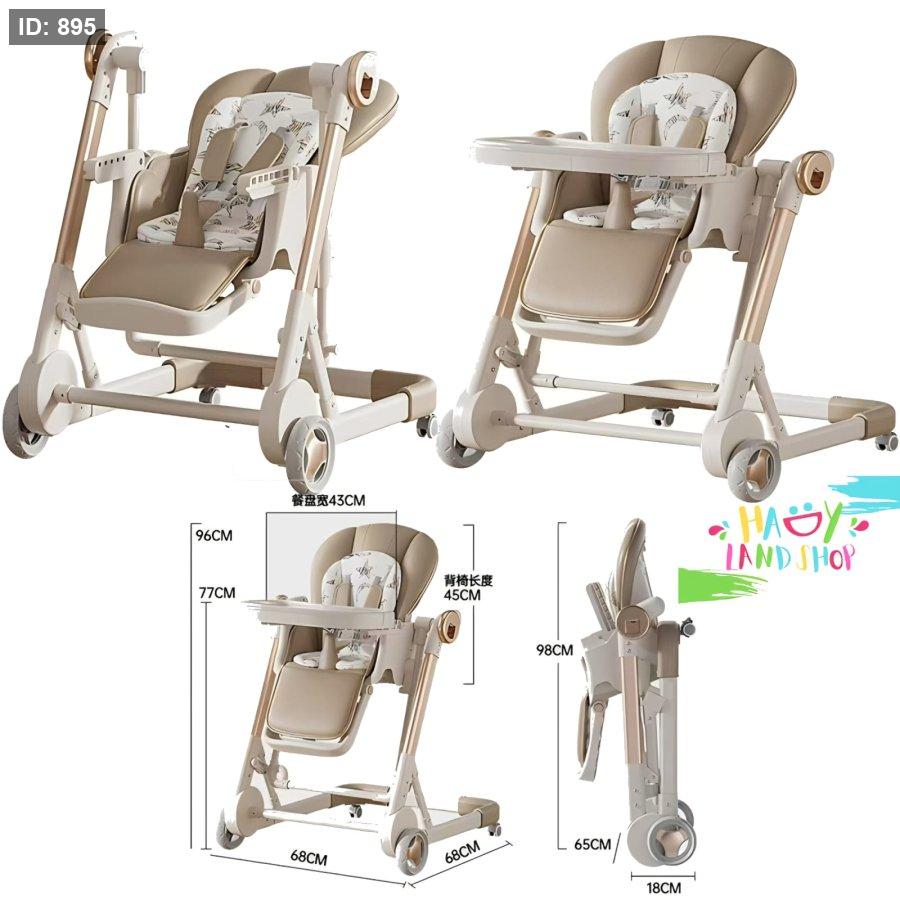 يأتي بمقعد مبطن بنقشة جذابة، مزود بحزام أمان، طاولة قابلة للفصل، وعجلات لسهولة الحركة.