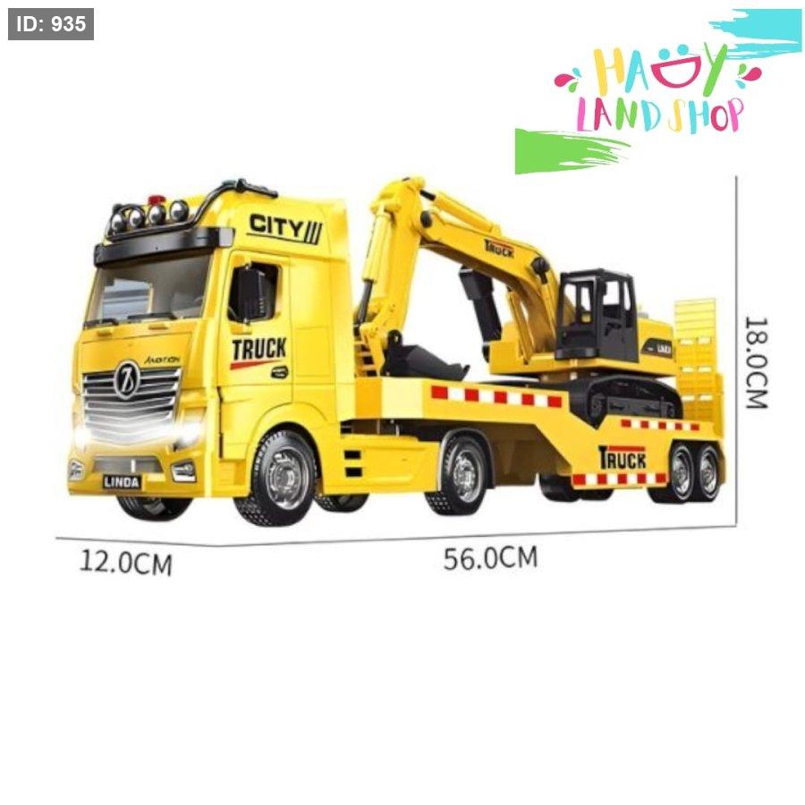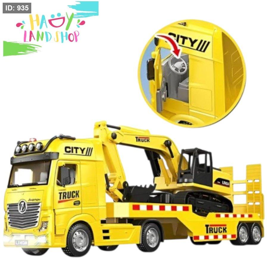 طقم شاحنة حفّار واقعي يجمع بين شاحنة نقل مسطحة ومجرفة متحركة قابلة للفصل.