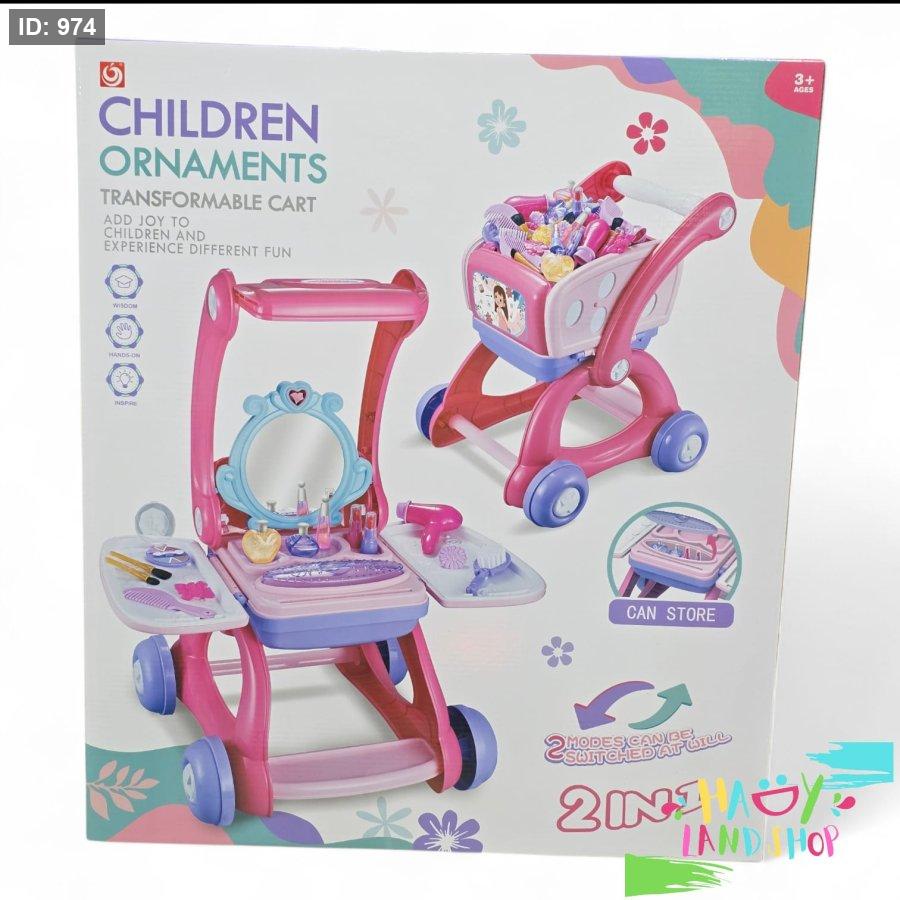 عربة الزينة المتحولة للأطفال "CHILDREN ORNAMENTS TRANSFORMABLE CART" هي لعبة مبتكرة تجمع بين المرح والتخزين والتخيّل، مناسبة للأطفال من عمر 3 سنوات فما فوق.