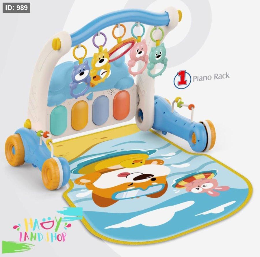 لعبة "HUANGER 2 IN 1 PIANO RACK & WALKER" تجمع بين المرح والتعلم في تصميم متعدد الوظائف يناسب الأطفال من عمر الولادة.