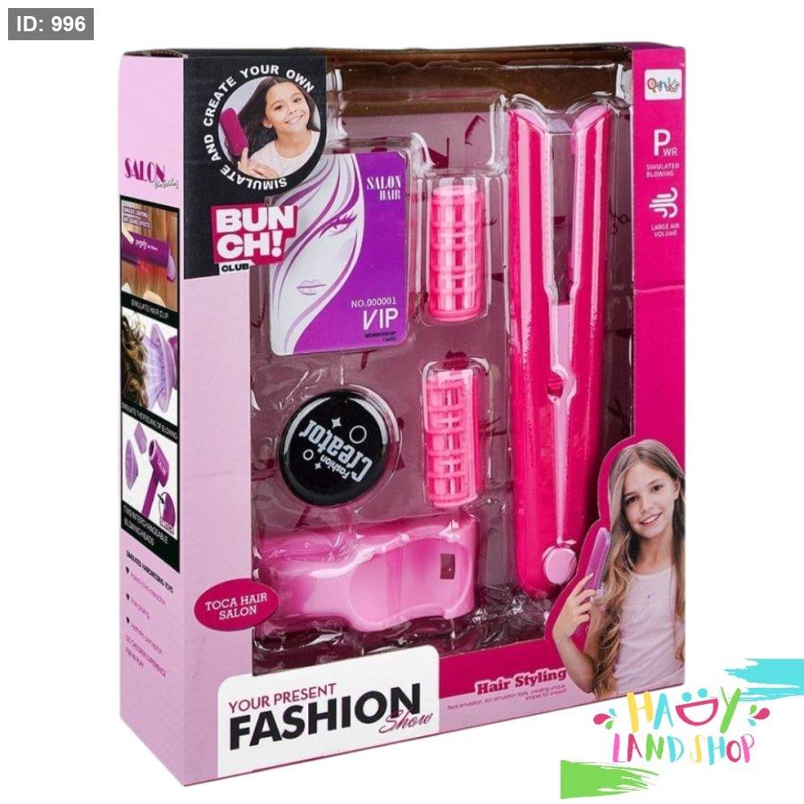 تحتوي المجموعة على أدوات تصفيف وردية وأرجوانية تشمل مكواة شعر، مجفف شعر بمحاكاة الهواء، رولات، عبوة "Fashion Creator"، وبطاقة عضوية VIP في صالون التجميل.